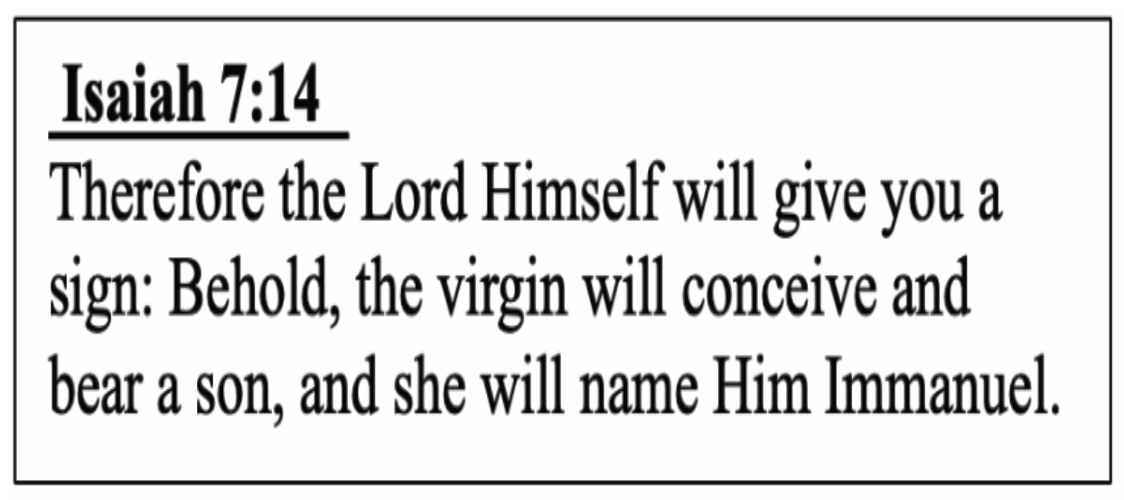 Matthew, writing under the inspiration of the Holy Spirit, applies this verse to Christ (Mat 1:22). The verse echoes the proto evangelium in Genesis 3:15 about the skull-crushing seed of the woman. It teaches that the promised messiah would be born of a virgin and be called Immanuel, (which means God with us). Jesus is indeed God with us. Jesus is the Word who was with God, who was God, and who became flesh and dwelt among us full of grace and truth (John 1:1, 14). A few chapters later Isaiah would identify this Immanuel as a Child who would be born and a Son who would be given whose name would be called. Wonderful, Counselor, Mighty God, Everlasting Father, Prince of Peace (Isa 9:6). Before Matthew quotes this verse, he says that this child would be called Jesus for he would save his people from their sins (Mat 1:21). And Isaiah tells us how he would save. "But he was pierced for our transgressions; he was crushed for our iniquities; upon him was the chastisement that brought us peace, and with his wounds we are healed" (Isa 53:5).